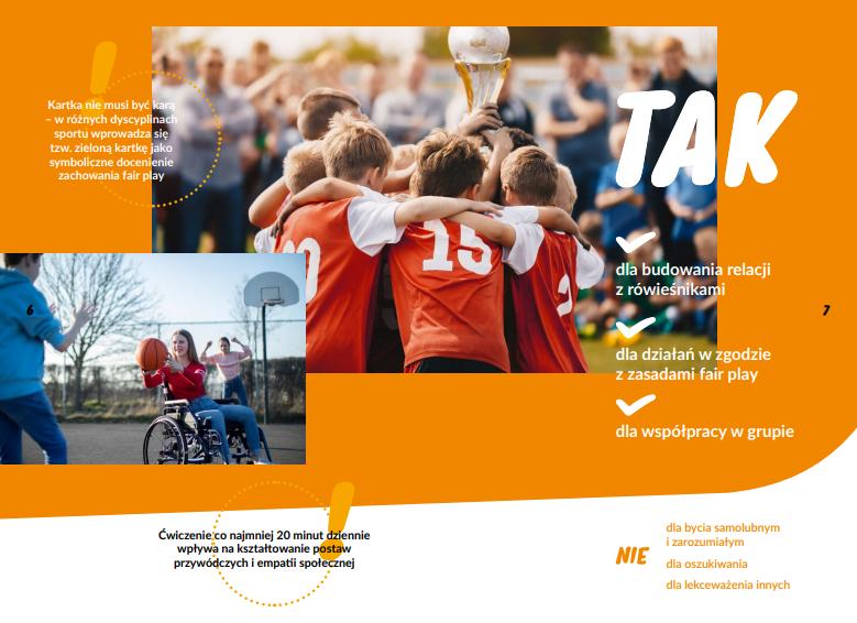 Szata graficzna broszury została oparta na radosnych i ciepłych żółto-pomarańczowych barwach i estetycznej bieli. Uwagę jej młodych odbiorców z pewnością przyciągną żywe zdjęcia, na których przedstawiono różne formy aktywności sportowej. Łączy je jedno - uśmiech na twarzach młodych sportowców oraz mnóstwo dobrej energii!