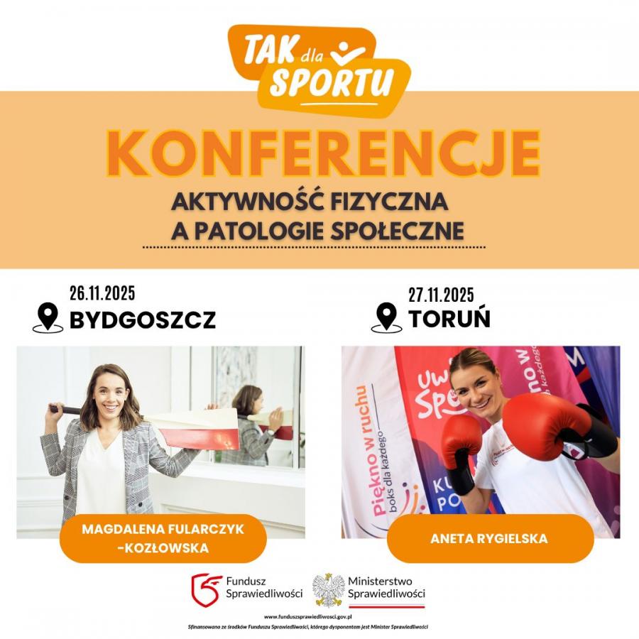 To będzie wielki powrót kampanii społecznej „TAK dla sportu, NIE dla agresji i przestępczości” do województwa kujawsko-pomorskiego. 26 listopada w Bydgoszczy i 27 listopada w Toruniu odbędą się bezpłatne dla wszystkich chętnych panele dyskusyjne, których uczestniczkami będą znakomite polskie sportsmenki – wioślarka Magdalena Fularczyk-Kozłowska oraz bokserka Aneta Rygielska.