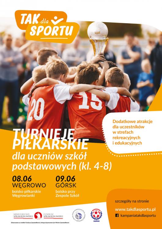 W Węgrowie na boisku piłkarskim Węgrowianki we wtorek 8 czerwca i w Górsku na boisku przy Zespole Szkół w środę 9 czerwca odbędą się turnieje piłkarskie (rozpoczęcie o godzinie 10:00), w których udział wezmą dzieci ze szkół podstawowych z klas 4-8. Oprócz samych turniejów piłkarskich, w których w obu przypadkach udział weźmie po 8 drużyn, przewidziane zostały dodatkowe strefy rekreacyjne i edukacyjne dla wszystkich uczestników.
